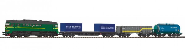 97940 Piko Стартовый набор M62 + 3 грузовых вагона СЖД VI, рельсы на подложкеПроизводитель: Piko